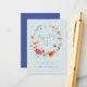 This design features a delicate watercolor wreath made of wildflowers in shades of blue, red, orange, violet, and gold. Perfect for spring and summer outdoor weddings.