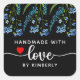Blue Wildflowers Handmade with Love Black Square Sticker