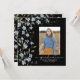 Blue Wildflowers on Black, Square Photo Graduation Invitation