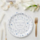 Elegant botanical watercolor navy blue wildflowers, tiny flowers with bride and groom names garden or rustic barn spring wedding paper plates.