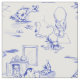 A delightful toile in blue willow colours featuring playful kitty cats romping in a bathroom.