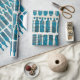A blue all over print wine bottle design wrapping paper, gift tags also available in this design.