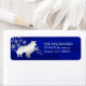 This distinctive return address label features a silver silhouette Border Collie dog image in front of a spray of ornate silver snowflakes. The image is placed on a gradient deep blue background. Your custom text is in matching silver at the right of the image. Beautiful!