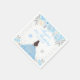 This elegant and glamourous napkin features a beautiful princess with brunette hair and fair skin in a blue ball gown. The text combines handwritten script and modern sans serif fonts for a classy and sophisticated look. The floral arrangements, snowflakes and silver confetti create the perfect blend of rustic and chic. Perfect for a winter themed birthday party.