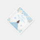 This elegant and glamourous napkin features a beautiful princess with brunette hair and fair skin in a blue ball gown. The text combines handwritten script and modern sans serif fonts for a classy and sophisticated look. The floral arrangements, snowflakes and silver confetti create the perfect blend of rustic and chic. Perfect for a winter themed sweet sixteen birthday party.