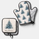 Blue Winter Christmas Tree Gold Star Oven Mitt & Pot Holder Set