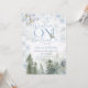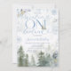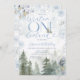 Blue Winter Onederland Forest Snowfall Birthday Invitation