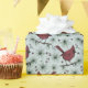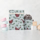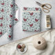 This elegant winter wrapping paper features a pattern of hand-drawn red cardinal birds perched on a pine branches against a soft blue background.