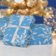Modern christmas wrapping paper featuring a winter blue background that can be changed to any colour, and sparkling silver/white snowflakes.