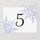 Customise these festive Blue Winter Snowflakes on White Table Numbers and create a different card for each table at your December, January or February marriage reception, bridal shower or engagement party. This elegant custom wintery table number cards feature intricate blue snowflakes adorning the corners with a white background.