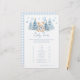 Add a touch of elegance to your winter festive themed baby boy shower with our sophisticated "Baby Traits" game. Featuring a charming teddy bear wearing cute blue bow, holding a blue balloon, surrounded by winter pine trees and snowflakes and baby blue gingham pattern at the back, this delightful activity is perfect for entertaining your guests and creating lasting memories. Ideal for adding fun and excitement to your special celebration!