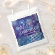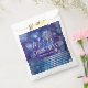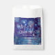 This festive favour bag captures the magic of a snowy Christmas night. The front features a rich blend of deep blue and purple, scattered with shimmering snowflakes in icy white and frosty blue. Soft bokeh lights glow like winter lanterns, adding warmth and wonder. Centred in crisp white text, “Merry Christmas” and your family name offers a personal touch, while horizontal blue stripes below ground the design with modern elegance. Perfect for adding seasonal charm to your holiday gifts.