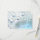 Elegant and unique winter wonderland theme scene wedding RSVP cards. Snow and snowflakes with twinkle lights, baubles in white , silver, blue background. Editable templates so you can add your own text.