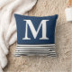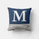 Blue With B/W Stripes Custom Monogrammed Cushion