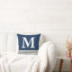 Solid Blue Colour With B/W Stripes Custom Monogrammed Throw Pillow. Perfect for bride & groom, any coupes, anniversary or valentine gifts.