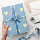 Birthday Gift Wrap wrapping Paper Blue with yellow hearts