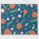 Blue with vibrant colour Flower Pattern gift wrapping paper. Unique, elegant and modern. Featuring my floral illustrations and foliage. Roses, Poppies, leaves, petals in orange, pink, greens, reds.