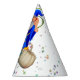 Kids will love Blue Wizard Party Hat with pumpkins on a twinkling stars background. Ideal for Birthdays, Kid's party themes of witch and wizardry. Use it for Fall festivals, Thanksgiving parties for family and kids.