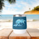 A stylised blue wolf (Canis lupus) casts a shadow as it passes through snowy terrain. Customise by adding your own text on the reverse side.