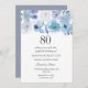 Blue Wonderland Grey Flower 80th Birthday Invite