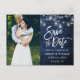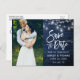 Modern Brush Script, Rustic Blue Wood, String Lights with Mason Jars, Save The Date Engagement Couple Photo Postcard
