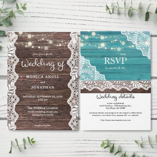 Blue Wood Lace & String Lights Return Address