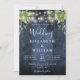 This all-in-one rustic blue barn wood string lights with greenery wedding invitation can be personalised with your information in modern typography and wedding details on the reverse. Designed by Thisisnotme©