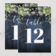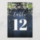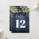 Blue Wood String Lights Greenery Table Number