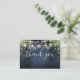 An elegant string lights rustic blue barn wood with greenery wedding thank you reception card, personalised with a special message and the bride and groom's names. Designed by Thisisnotme©