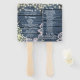 Blue Wood String Lights & Lace Wedding Program Hand Fan