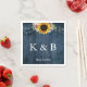 Blue Wood Sunflower Lights Initials & Date Napkin