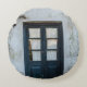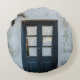 BLUE WOODEN DOOR PANEL IN WHITE BUILDING ROUND CUSHION
