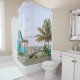 BLUE WOODEN HOUSE NEAR BODY OF WATER SHOWER CURTAIN