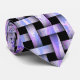 Wooden weave effect pattern with varying tones of blue, purple and white on a black background neck tie