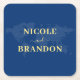Blue World Map Destination Wedding Square Paper Coaster