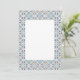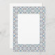 This modern blank wedding invitation has a blue and white tile border, with yellow highlights. The style evokes the warmth of the Mediterranean and customisable text so you can adapt for your own wedding or event.