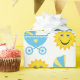 BLUE & YELLOW BABY CARRIAGE & YELLOW SUN WRAPPING PAPER