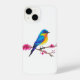 Blue & Yellow Bird with Pink Blossoms drawing iPhone Case