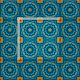 Seamless geometric pattern featuring geometric shapes in blue and yellow.