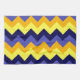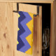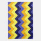 A kitchen towel featuring a cute, ombre pattern design of chevrons in blue, yellow and gold.