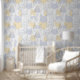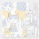 This pattern is special because it offers a whimsical, yet sophisticated, retro design featuring stylized cats. The limited color palette of pale blue/lavender and warm yellow/gold provides a clean, Scandinavian feel, making it a perfect accent for contemporary rooms or for creating unique fabrics and apparel.