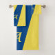 Blue yellow modern elegant chic bold monogrammed bath towel set