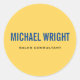 Blue Yellow Modern Plain Simple Minimalist Name Classic Round Sticker