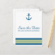 Elegant and classic Nautical Anchor Save the Date Postcard with a simple boat anchor and an array of stripes in dark navy blue and yellow. This nautical beach themed save the date can be easily customised with your wedding details. For more customisation options, click on the Customise It button.