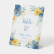 Blue Yellow Peony Wedding Table Numbers Pedestal Sign