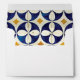 This design features rustic vintage Portuguese tile patterns. Unique Azulejo blue, yellow and white geometric floral wedding invitation envelope design with return address. Matching wedding invitations and other stationery items are also available.
