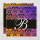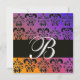 BLUE YELLOW PURPLE BLACK DAMASK MONOGRAM , white Invitation