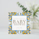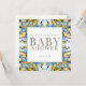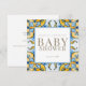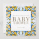 Blue & Yellow Baby Shower Invitation. Square. Gold text.