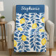 Blue Yellow Watercolor Lemon Name Fleece Blanket