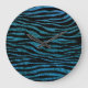Blue Zebra, Glitter Zebra, Zebra Print, Stripes Large Clock